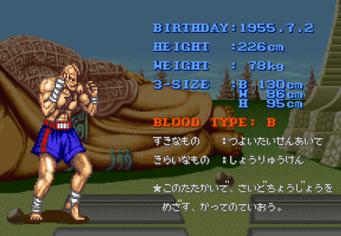 サガット ← ムエタイの絶対帝王、かつて自らの強さに溺れていたがリュウに敗れる