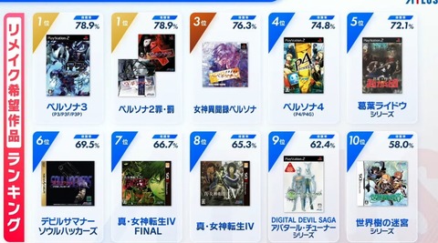 ATLUS公式が『リメイク希望タイトル』ランキングを発表!1位はやっぱりあのタイトル
