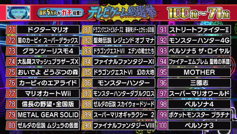 【画像】テレ朝『ゲーム総選挙』の71〜100位作品がこれ