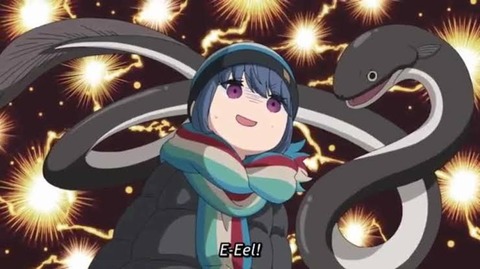 (ヽ´ん`) 今朝岩場で釣ったウナギな、天然物だから顔つきが違う