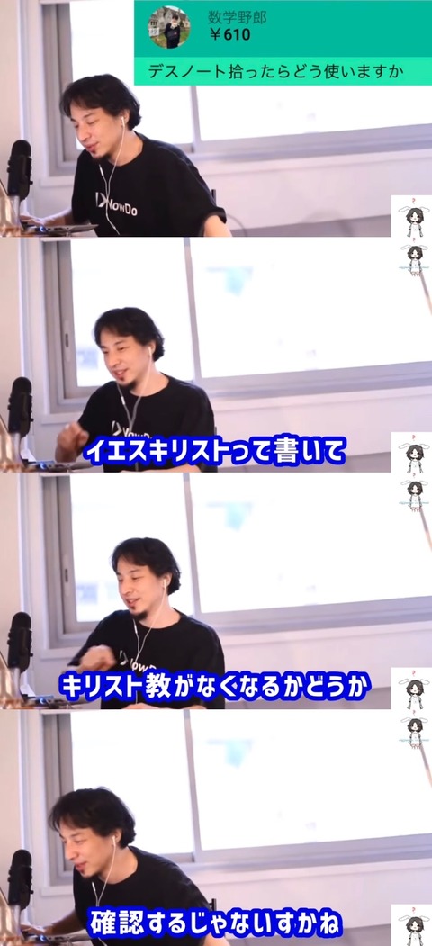 【アカンすよ!】ひろゆき「デスノート?おいらならイエス・キリストって書いてキリスト教を消しますね」【異端審問】