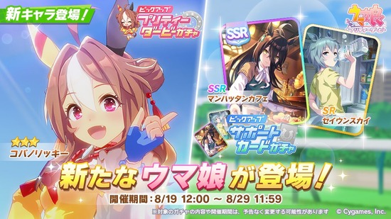 【ウマ娘】★3コパノリッキー、サポカSSRマンハッタンカフェ、SRセイウンスカイが登場!10連ずつ回します