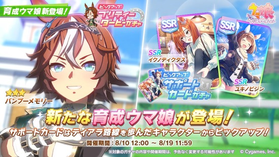 【ウマ娘】★3バンブーメモリー、サポカSSRイクノディクタス・ユキノビジンがピックアップで登場!キャラに20連回します