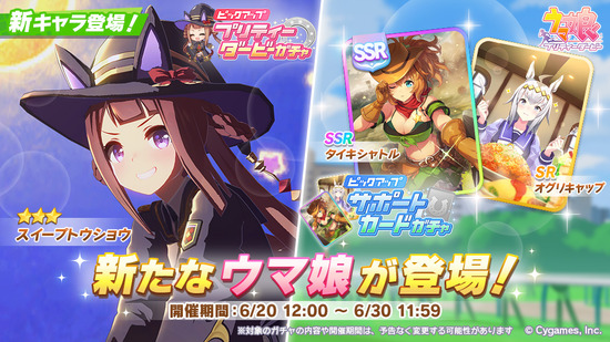 【ウマ娘】★3スイープトウショウ、サポカSSRタイキシャトルSRオグリキャップが登場!10連ずつ回します