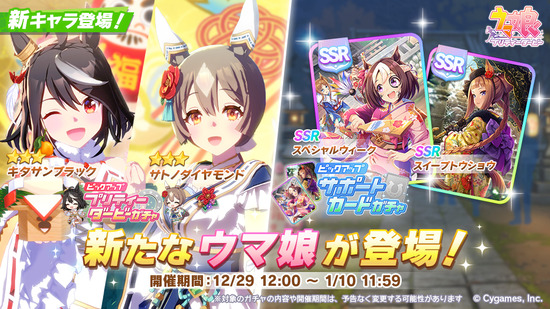 【ウマ娘】★3新衣装キタサンブラック・サトノダイヤモンド、SSRサポカスペシャルウィーク・スイープトウショウが登場!10連ずつ回します