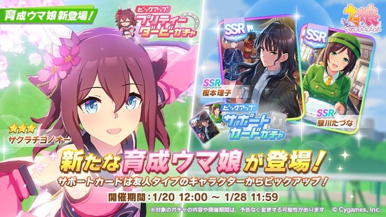 【ウマ娘】★3サクラチヨノオー、サポカにSSR樫本理子・駿川たづなが登場!キャラに20連回します