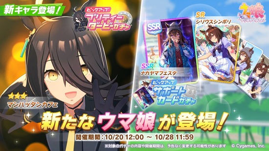 【ウマ娘】★3マンハッタンカフェ、サポカにSSRナカヤマフェスタSRシリウスシンボリが登場!10連ずつ回します