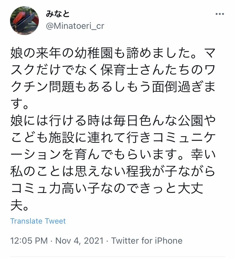 【悲報】女さん「コロナ面倒だから娘を幼稚園に入れるのは諦めました」→10万いいねwwwwwwwwwwwww