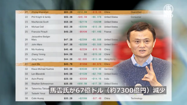 【動画】今年資産を最も減少させた億万長者10人のうち6人が中国人でした~!