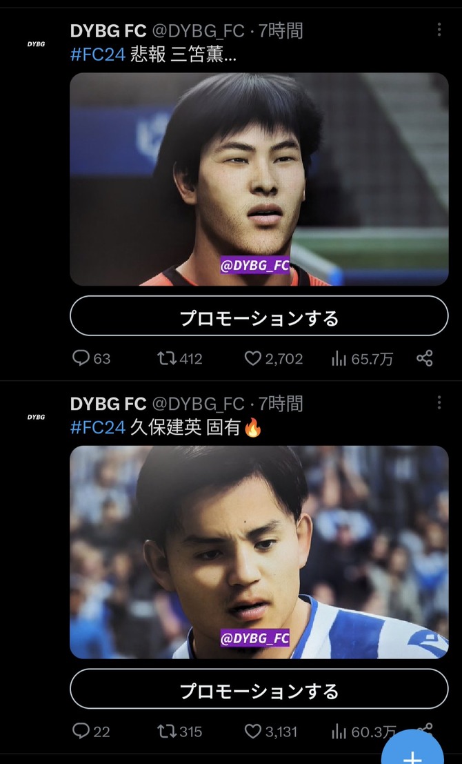 【画像】久保建英さん、FIFA最新作の顔が三笘と全然違う件wwwwwww