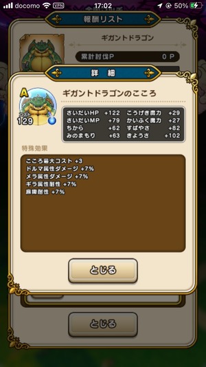 【DQウォーク】ギガントドラゴンのこころAのステータスがコチラ