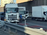 【動画】 東北自動車道 岩槻IC〜川口JCTでトラック複数台絡む事故 「ガードレールの間に挟まり大破」 3車線完全に塞がれ通行止め