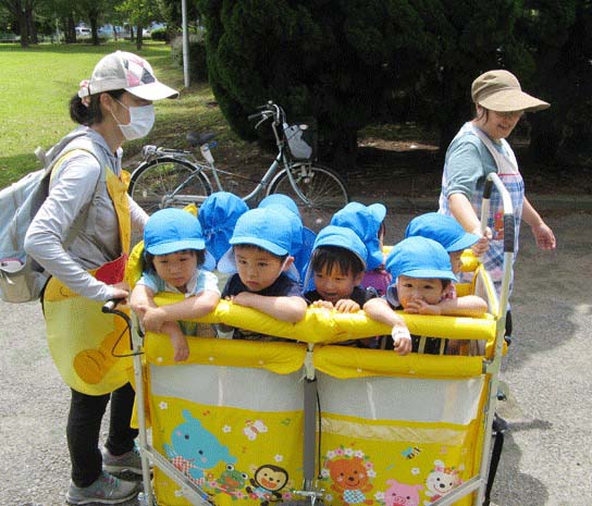 保育士が園児を大量にカゴに詰め込んで散歩してる光景wwww