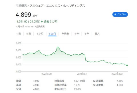 『スクエニ』の株価が下がる度、日本のゲーム業界が否定されてるみたいで辛い
