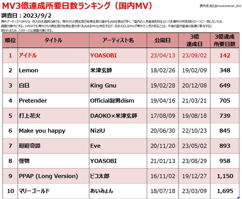 【朗報】YOASOBIの『アイドル』ガチでとんでもないスピードで3億再生を達成してしまう【推しの子】